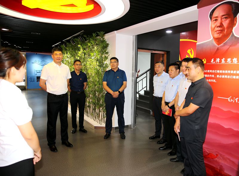 7月16日,山东天行健置业有限公司董事长陈志远、总经理颜东升带领党员干部职工一行来集团党群中心参观,开展学习教育活动。集团董事长宗成伟、总经理侯钦军、副总经理王慎礼、副书记张明陪同活动。