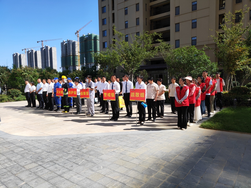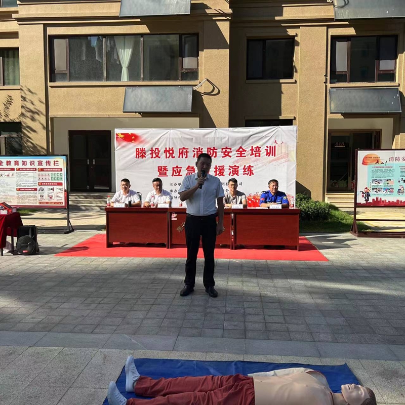 中秋国庆双节将至,为进一步提升节日期间消防应急救援能力,确保九游(中国)一站式服务官方网站各下辖小区度过一个安全稳定、欢乐祥和的佳节。9月21日下午,集团万德物业公司联合滕投悦府物业服务中心开展第三季度物业消防综合演练活动。活动邀请了北辛街道文化路社区领导、滕州蓝天救援队救援人员、集团下辖14个物管项目经理和安全专员共计80余人参加活动。