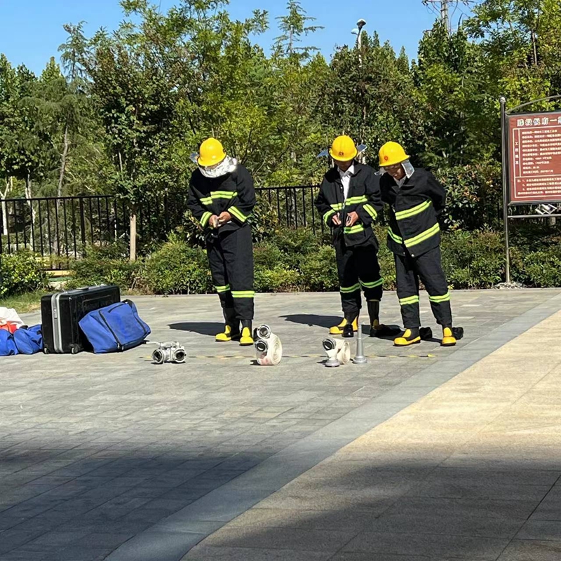 本次消防综合演练活动分为消防器材的讲解及实操、穿戴消防服及水带连接、火灾救援演练和应急救援处置培训四个阶段。