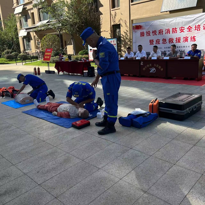 应急救援处置培训阶段,蓝天救援队队员现场开展了心肺复苏和海姆立克急救法的救援培训,通过理论讲解、现场操作及员工亲身体验,让物业人员学习到了更专业的医疗急救知识,提高了应急紧急突发事件的医疗救护能力。
