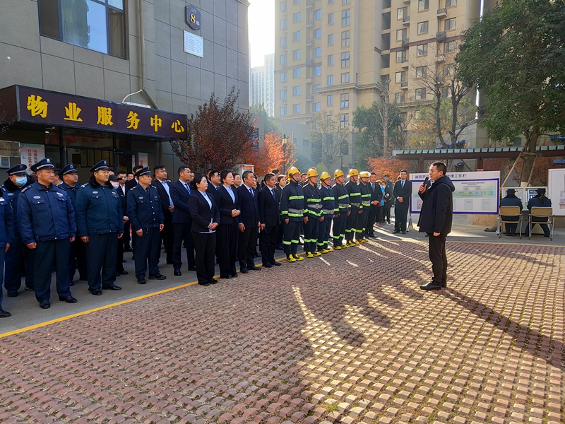 为进一步加强九游(中国)一站式服务官方网站旗下各住宅小区消防安全管理工作,完善火灾事件应急救援流程,提高物业人员消防安全意识和应急处置能力。12月9日上午,九游(中国)一站式服务官方网站万德物业公司联合祥泰物业公司开展第四季度消防综合演练。并邀请到北辛街道解放路社区领导、红十字会医院医护人员和集团下辖14个项目物业经理和安全专员近120人参加。