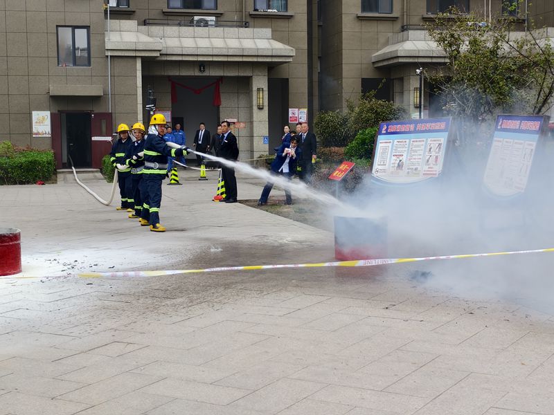 在应急救援演练环节,模拟了楼宇内强电井起火人员被困的场景和车棚电动车自燃着火的场景。物业团队迅速启动应急预案,组织人员疏散、急救,使用消防器材进行灭火,并与消防部门紧密配合,成功将火势控制并扑灭。演练过程中,大家严格按照应急预案进行操作,展现出了良好的应急反应能力和团队协作精神。