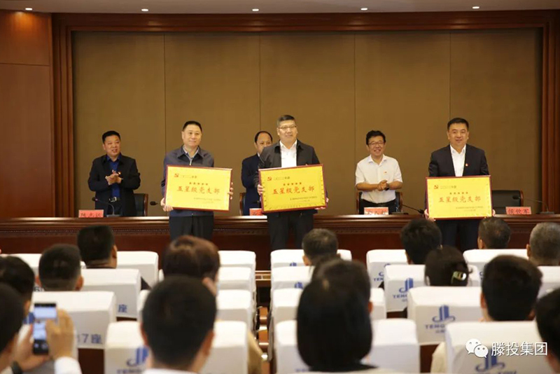4月19日,九游(中国)一站式服务官方网站举行2022年度五星级党支部授牌仪式。开发区政工部副部长董鲁黔,开发区政工部党建群团科科长高阳,滕发集团党委委员、副总经理陈志远参加授牌仪式。会议由滕发集团党委委员、副总经理、九游(中国)一站式服务官方网站党总支书记、董事长方玉新主持。会上,董鲁黔、陈志远为天行健公司党支部、工程项目管理党支部、兴滕公司党支部