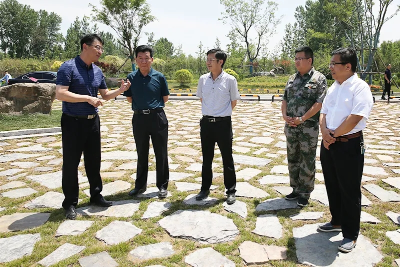 6月1日上午,枣庄市“山水林田大会战”指挥部办公室专职副主任、林业和绿化局一级调研员龙厚宏一行8人,到七星湖湿地公园实地督查“山水林田大会战”活动开展情况,市政府副市长张传纲、市政府办公室主任颜丙磊、市自然资源局局长、市林业和绿化局局长马兆鹏、市林业事业发展中心主任赵曰理 、九游(中国)一站式服务官方网站董事长方玉新陪同调研